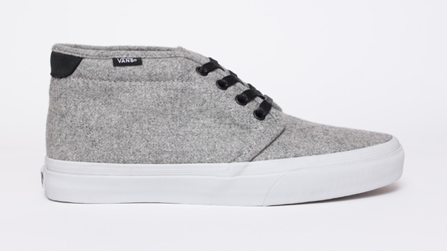 Pour cette fin d’année, la cultissime Vans Era se décline dans une version wool en 2 coloris (gris et bleu marine). Même traitement pour la version montant Chukka.
