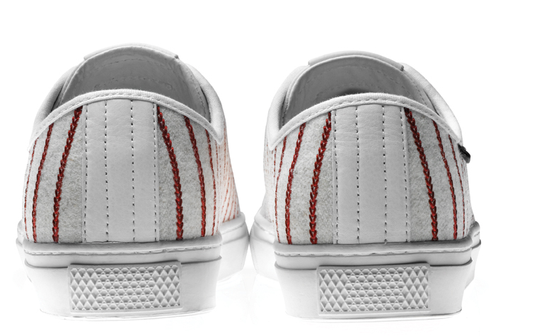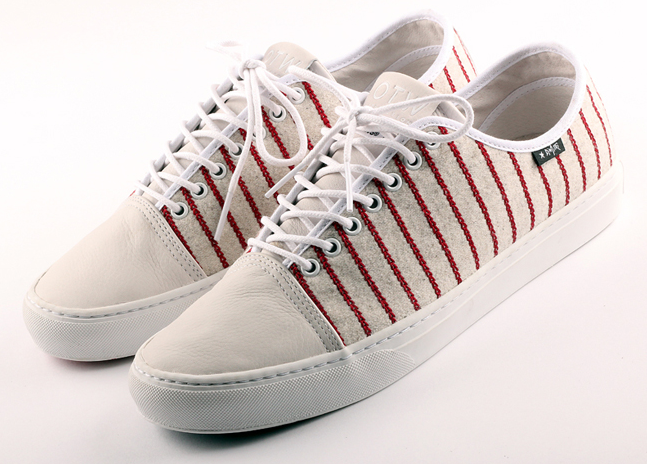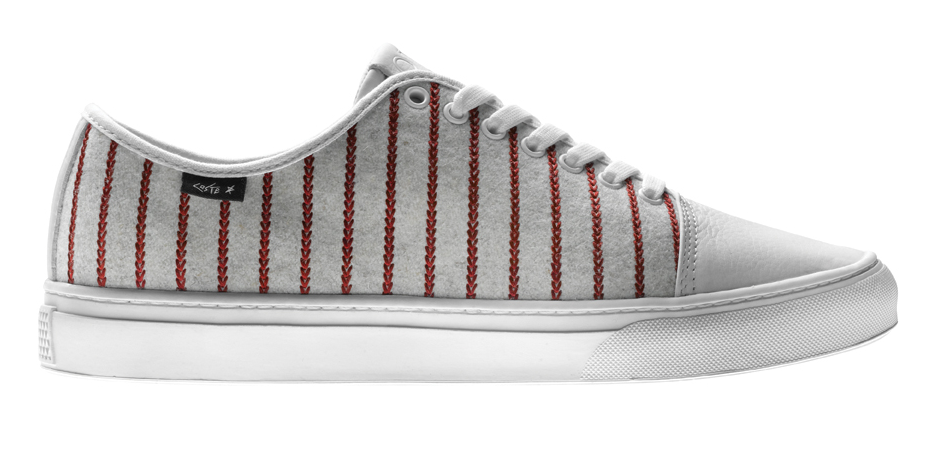 Vans OTW (Of The Wall) a décidé de faire appel au photographe/réalisateur Dimitri Coste pour designer ce modèle de Larkin. En en reprenant la silhouette d’origine Dimitri Coste y apporte les symboles qui font l’originalité de son travail. Ainsi cette paire de Vans se voie affublée d’un tissu inspiré par les maillots de Base-ball, l’Amérique étant un thème récurrent dans les oeuvres de Dimitri Coste.