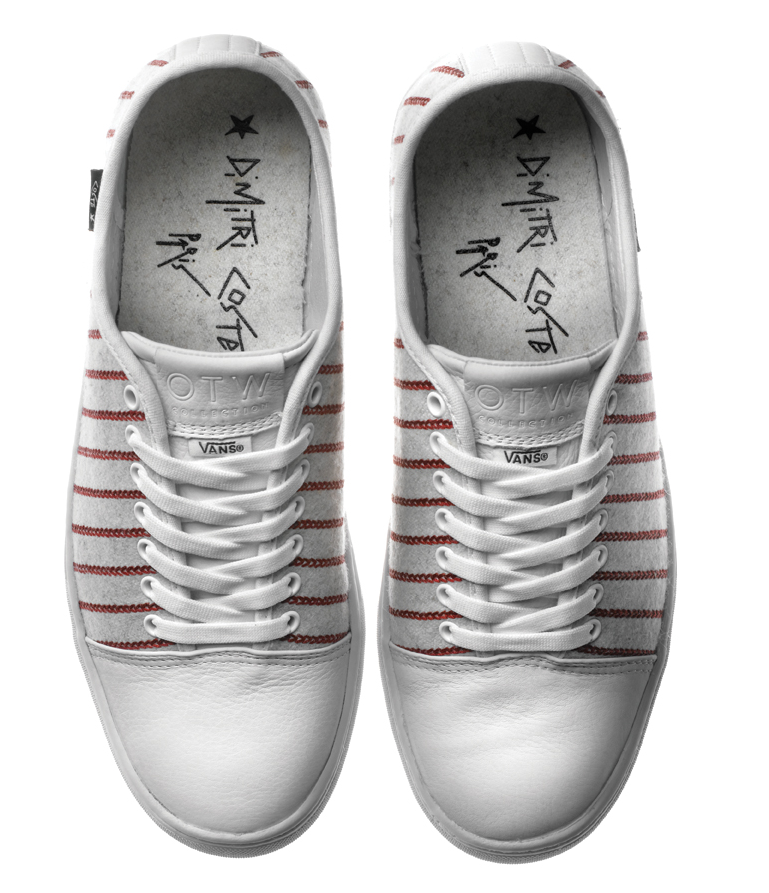En bon Parisien il signe cette paire de Vans Larkin Decon : « Dimitri Coste Paris ». On notera également les semelles bleus et rouge qui mêlée au blanc de la chaussure en font un parfait drapeau Français.