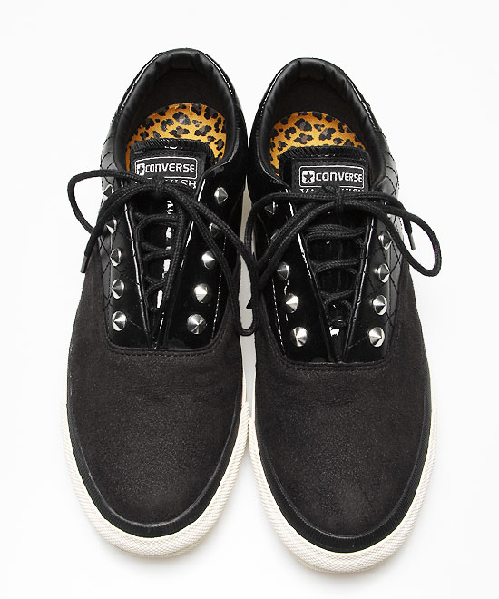 Converse s’est associé à la marque japonaise Vanquish et nous presente cette paire de Skidgrip VQ. Tout en gardant l’essence de la skidgrip originale la Vanquish x Converse Skidgrip y ajoute les codes Vanquish : Cuir matelassé brillant, boutons coniques et semelle léopard.