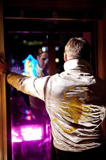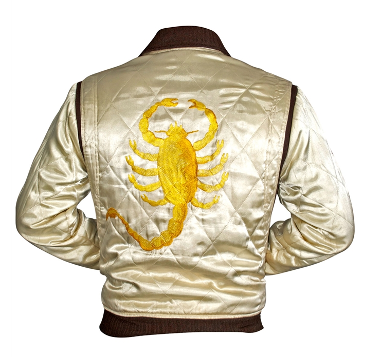 Nous n’allons pas ici nous étendre sur le film Drive et sa bande originale qui sont d’avis unanimes les meilleurs surprises de 2011. Nous n’allons pas non plus vous decrypter le look de Ryan Gosling dans ce film ( chemise, blouson fermé, jean bootcut, gants de conduite, cure-dents, lunette de soleil et montre). Cependant il nous est impossible de passer a coté de cette chance de se procurer la veste qu’il arbore dans Drive. Élément emblématique du film cette veste « très Versace » brodée d’un Scorpion dans le dos, n’est pas des plus facile a porter alors si jamais vous avez peur de ne pas faire autant d’effet que Ryan Gosling dans cette veste on vous donne un petit accessoire qui siéra parfaitement. Rendez vous en bas de page.